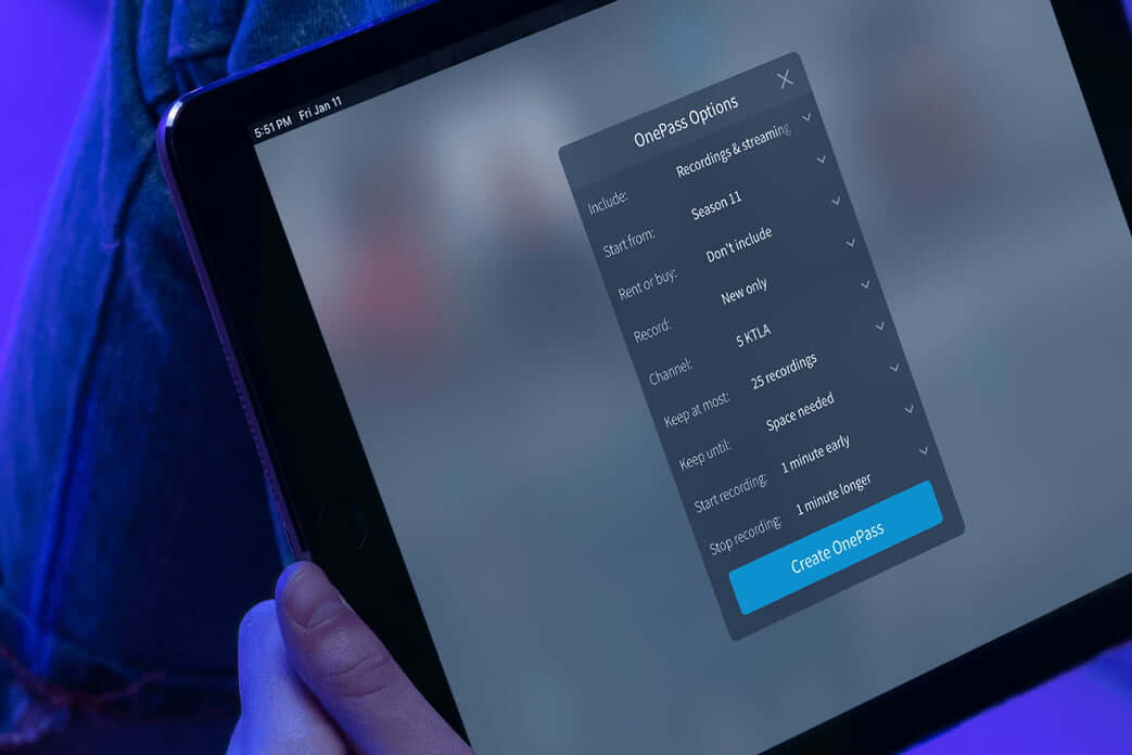 The second you hear about a new binge-worthy show, set up a recording or schedule a OnePass™ to capture every available episode, on the spot. It’s like having your own personal entertainment concierge.